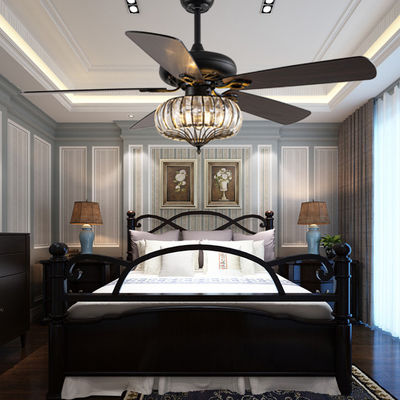 Kryształowy klosz Silent LED 36W Wysuwany wentylator sufitowy ze składanymi ostrzami